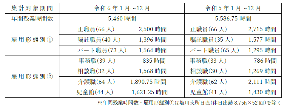 ① ・各部署ごとのノー残業デーの実施状況の把握と課題分析
