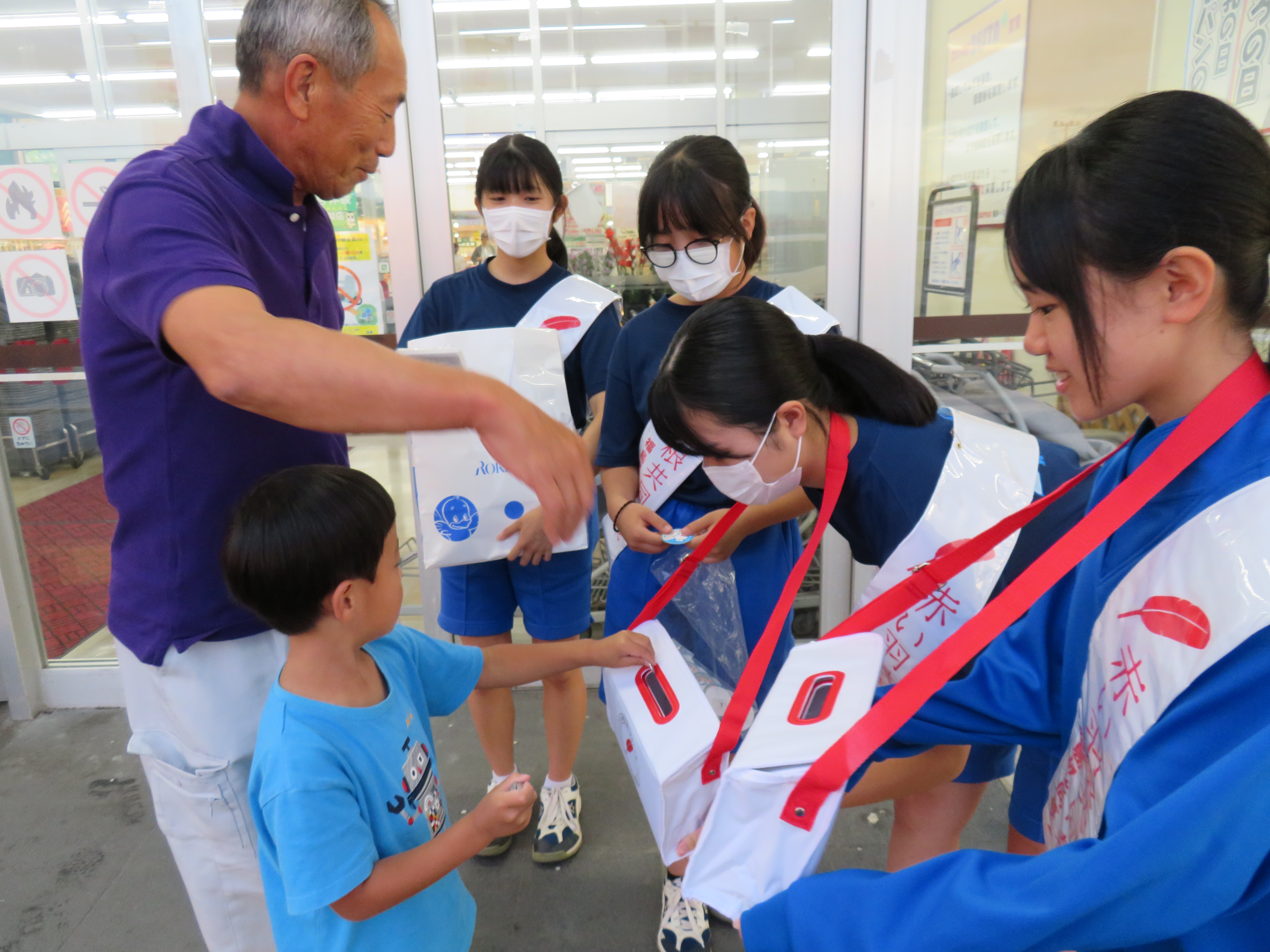 10月1日(水)市内スーパー7店舗において、赤い羽根共同募金運動のオープニングイベントとして街頭募金を実施しました。